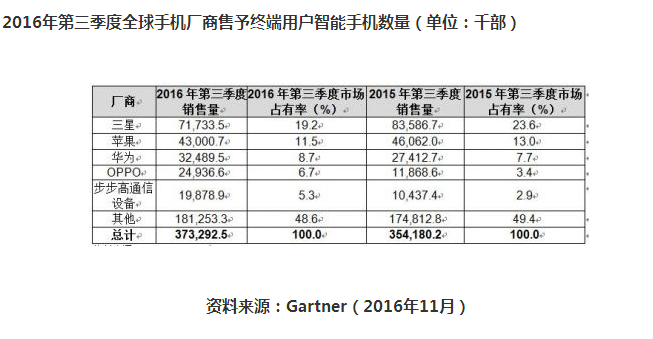 2016全球手机销量最新排名 中国厂商市场表现亮眼