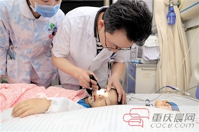 陈太忠医师正对皓皓进行检查。记者 敖一航 摄